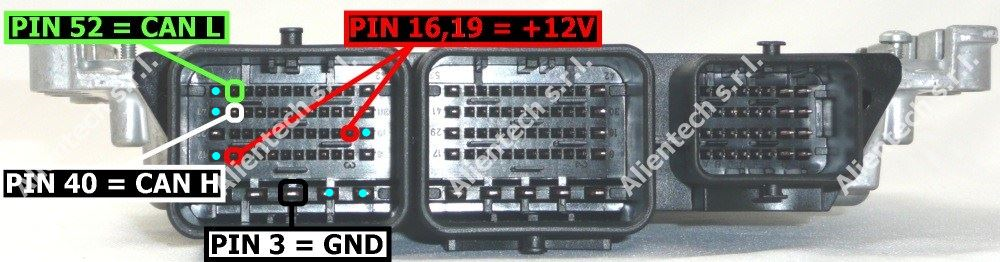 209 MED17.4 XROM TC1796 - TURBO engine Дата публикации: 14 августа 2018. Pin Color Description Pin 6,19 Red +12V Pin 3 Black Ground Pin 40 White CAN-H Pin 52 Green CAN-L Soldered wire Gray with alligator clip BOOT Назад Вперед