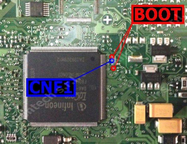 286 MEV17.4.2 IROM TC1767 - Hardware 2 Дата публикации: 14 августа 2018. Pin Color Description Pin 5,19 Red +12V Pin 4 Black Ground Pin 40 White CAN-H Pin 52 Green CAN-L Soldered wire Gray with alligator clip BOOT Soldered wire Blue with alligator clip CNF1 Назад Вперед